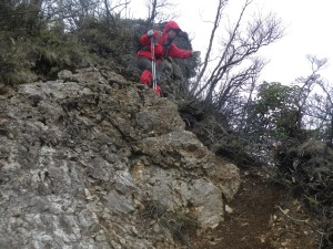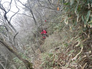 | 岩壁の下の急斜面を滑らないように | 古祖母山までの稜線 | 土呂久への分岐 |