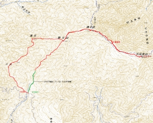 | 障子ケ岳から古祖母山への稜線 | 一旦降る | B-29墜落の地 |