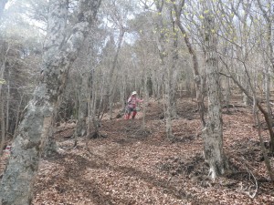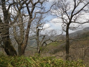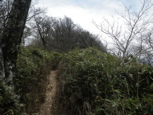 | スズタケの道を降るが | 再びこのピークを登る | ブナ林のきれいな斜面 |