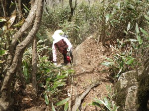 | 結構急な下り(滑りやすい) | 登って一息 | アケボノツツジの花で元気つけられる |