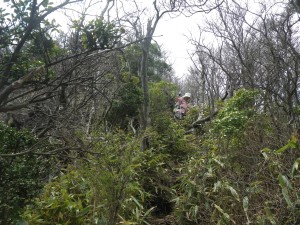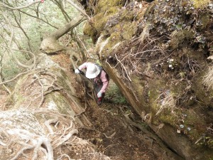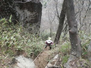 | 山頂か? | ピークの下を巻く | ロープ場を登る |