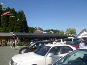 | 滝を見るために遊歩道が整備されています | 帰路の途中で立ち寄った道の駅波野 | 大混雑 |