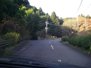 2010年12月12日 天気 晴れ せっかくの天気の良い日曜日である。前夜、どこに行こうかとガイドブックを引っ張り出す。条件は、日帰りできて未踏の山。となると車で3時間以内で行けて歩行時間は5時間以内となる。もうなかなかない。行くからには面白そうな山が良いし・・・・・。と色々と悩んだ結果、国東の両子山(ふたごさん)に登ることにした。時間に余裕があれば、その近くの文殊山(もんじゅさん)にも行ける。朝5時起床、愛犬の散歩を済ませ6時40分に自宅を出発し、途中、コンビにで食料を買い、両子寺(ふたごじ)に着いたのは8時40分だった。今回のコースもグリーンウォークを参考にして一般的な舗装道を往復するコースではなく、郡境尾根を歩き下山に舗装道をとる周遊コースにした。ただ、帰路は町境尾根コースを歩けばよかったと少々後悔である。 <コース詳細> 両子寺手前のY字路(写真)を左に走水観音(はしりみずかんのん)へと車を走らせ、駐車スペースに車を停めます。水汲みに来られる人が多いようです。菩薩様に手を合わせ、出発です。国東トレッキングコースの道標を見て植林帯の登山道を歩きます。途中、道標があるのですが、どう見間違えたか、開けた場所より再び植林帯に入るところで道がなくなってしまい、探すうちに谷間を詰めれば林道に出会うはずなのでそのまま登りつめました。コンパスと地図で確認すると一つ東側の谷間を歩いたようです。(どこで間違えたかは結局わからない)無事林道に出ると東(左手)に進路をとり、しばらく歩くと前方に(やや右)両子山の山頂にある電波塔が小さく見えてきます。さらに進むと左手に「郡境尾根入口」と道標がありますのでそこより取り付きます。森林の中、すぐに三角点(493.8m)があって(どうしてこんなところに?)通り過ぎると道標があり、右に折れると尾根歩きとなります。自然林らしくなってきてなかなか雰囲気の良い尾根歩きです。急登を喘ぐとピークに出ます。右に折れ、再びオアキの多い茂る尾根を歩き、さらに急登すると見晴らしの良い断崖のピークに出ます。ここから両子山が良く見えます。電波塔のある山頂を挟んで両側に尖ったピークがあります。まるで母親が子どもを両手につないでいるように見えるのは私だけでしょうか一服したら少し東側へ戻るように下ると鞍部に出て急登となります。登りきると西側が開け、屋山が目の前に見えます。遠くに由布岳も見えます。見晴らしを見ながら進むと狭い西峰です。展望はありません。右手に下りますが倒木であるので避けて歩きます。鞍部から急斜面を登り返すと道票があるピークに出ますのでそこから右手に少し下ると舗装道に出ます。 次ページへ |