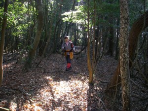 | 落ち葉の絨毯は歩きやすい | 一つ目のピークへ | 後ろから家内 |