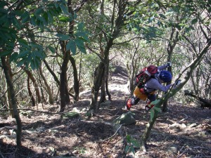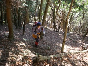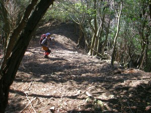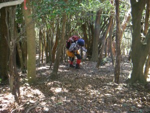 | 両子山の頂上がよく見える | 一旦戻るように東側の尾根を下る | 再び急登 |