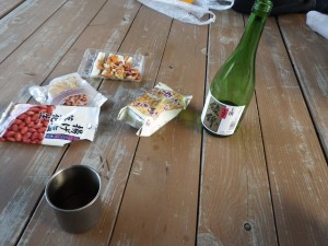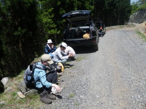 | 今度は全員で(MORIさん撮影) | 昼食は簡単に | 帰りに見た双耳峰 |