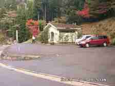 登山口までのアクセス(マイカー) 英彦山駅から英彦山を目指す国道500号を「しゃくなげ荘」へ向かって行きます。約5Km程で湯の山「しゃくなげ荘」で右に大南林道の絵の看板があります。 とにかくこの林道を進みます。舗装された道から山道に変わり途中英彦山の「鬼杉」と書いた標識が左手に見え、さらに奥深く進みます。湯の山から約5Kmで登山口です。車が3台〜4台駐車できるスペースがあります。(写真左上) |