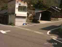 | 公園横の車道を行く | 車道T字路の路地に標識がある | 民家の庭を抜ける(静かに通る) |