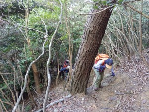 | 針の耳直下の鎖場 | 針の耳を潜る(10:02) | 大きな松の木だが枯れていた |