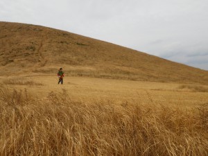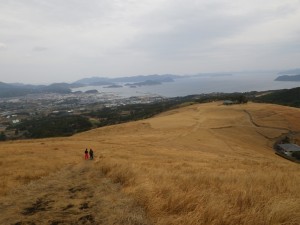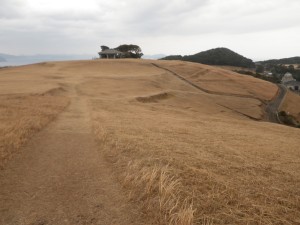 2014年1月25日(土) 天気 曇り一時雨 ■出発時間:午前6時20分(自宅) 6時40分発ソニックにてJR下曽根駅→7時47分博多駅着→8時00分発博多駅発地下鉄 8時5分福岡空港着→第一ターミナル徒歩5分 ■メンバー:家内と2名 20代の頃の私であれば長崎県五島市に行くなら目的は「釣り」であったろう。おそらく山に登る人は、あまりいないに違いない。もし、九州百名山がこの土地になければきっと私はこの地に足を延ばすことがなかったかもしれない。 今回は家内も行けるというので色々調べると面白そうな観光名所もあるようなのでせっかく行くなら時間を目いっぱい使いたい。もちろん安く行けることも条件である。 その結果、JTBでANAスカイホリデー(宿泊パック)にすることにした。これならばきっと満喫できるだろう。心配なのは天候で予報では初日は雨で翌日は曇りの予報であった。 福岡空港でチェックインして朝食にうどんを食べ、余裕で搭乗口に行くと何と渋滞。保安検査に時間がかかっている。荷物(ザック)を預けるときも「ライター」と「カメラの予備電池」が引っかかった。今度は電子機器類をバックから全て出してケースに入れないといけない。本当に面倒であるが仕方ない。 久しぶりのプロペラ機は予想していたよりも揺れがなく(家内は怖がっていた)あっという間に福江空港に着いた。レンタカー会社の人が迎えに来てくれて手続きを終え、すぐに出発。今日はあまり天候が良くないので七ツ岳は明日にして鬼岳、箕岳、そして大瀬崎灯台を見に行くことにした。鬼岳は、空港の近くにあってその姿を見れば誰でもそれが鬼岳とわかるほど個性的である。この時期は黄土色をしたまさにハゲ山と言う感じだが、春になればきっとお椀を逆さまにした緑の草原のフサフサの山となるのであろう。道がなくとも迷いようがないほど先が見渡せるので鍋底を歩いても適当に歩いても気持ちよく歩ける。お鉢の縁の上からは海も見えて何か得をしたような気になる。 鬼岳を歩いた後は、その鬼岳が噴火して溶岩が流れ出た海岸「鐙瀬溶岩海岸(あぶんせようがんかいがん)に立ち寄った。そして箕岳へと移動する頃、雨が降り出したがすぐに止み、箕岳園地から山頂へ歩いた。鬼岳も箕岳も「登山」と言えるようなものではないが、頂上から見る景色は、かって見たことがない風景で特に田畑の色と形はまるでアニメの世界と感じたのは自分だけであろうか。 箕岳を登り終えて食事ができそうな郊外型の店を探すが見当たらない。ナビでそば屋を見つけたが閉まっていた。コンビニもない。おそらく福江港辺りまで戻らないとないようだ。 結局、うろうろして車内で持ってきた魚肉ソーセージをかじり「今夜はご馳走食べような」と家内をなだめ空腹のまま大瀬崎へと向かう。 大瀬崎までは福江港から約1時間半もかかる。五島は島だけど結構大きいなぁと感じる。 途中にある井持浦教会(ルルド)に立ち寄る。五島は弘法大使・空海が遣唐使船団と共に唐に渡り帰国後、五島各地を巡り数多くの伝説を生んだそうでこれが770年頃と言う。宣教師ルイス・デ・アルメイダらが来島し布教したのが1566年。空海の活動した時から何と約800年後となるわけで気が遠くなる話である。教会の前には広くて遊具設備の整った公園があるが誰もいない。我家の近くであればきっと子供たちが賑やかに遊んでいることであろう。 大瀬山はこの教会のちょうど上部の山だが、車道をぐるっと海岸を回り込むように車を走らせる。大瀬崎口に標識があるので左折し、坂道をジグザクしながら山頂直下の広い駐車スペースに車を停める。 次ページへ |