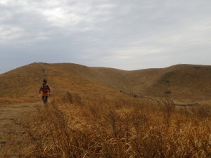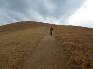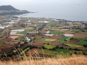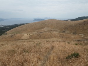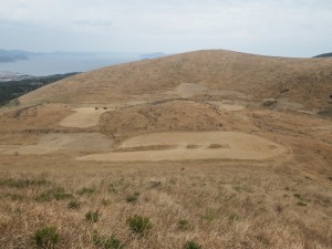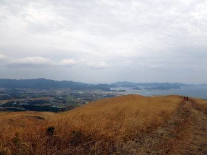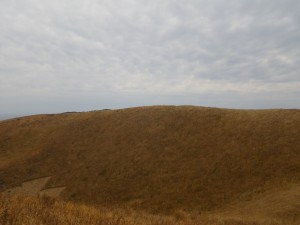 | 火口縁を歩く | 福江空港が見える | 海が見える |