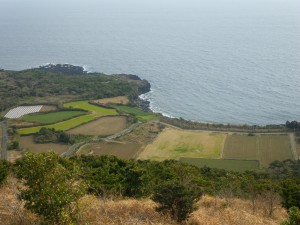 | 海を見ながら歩く | アニメのような田畑 | 海もエメラルド |