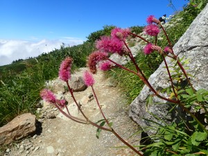 | タカネナデシコ(高嶺撫子)ナデシコ科 | ずいぶんと登った | 頭上にあるのが黒ボコ岩 |
