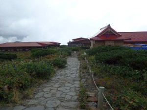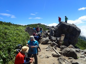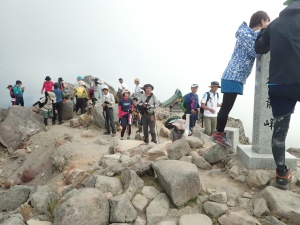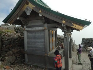 | 参道なので石畳 | 白山奥宮(13:03) | 頂上は多くの登山者で賑わう |