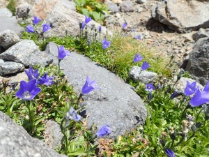 | 室堂を背にして | ひな鳥が餌を求めているようなイワギキョウ | (岩桔梗)キキョウ科ホタルブクロ属 |