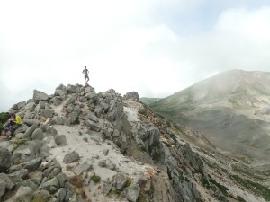 | ▲御前峰より大汝峰(左)、剣ケ峰(右)を見る | ||