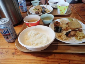 | 800円の高級ビールで乾杯 | 山小屋にしては御馳走 | |