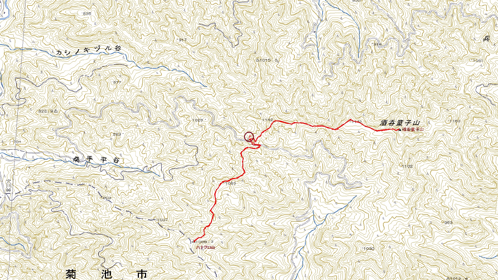 酒呑童子山・ハナグロ山登山コース(GPSによる歩行軌跡)
