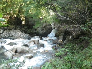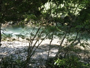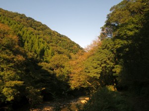 | 振り返る | 遊歩道をしばらく歩く | きれいな渓谷 |