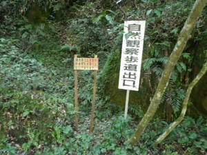 | 自然観察歩道は立ち入り禁止 | 登山口(11:47) | 木の橋は滑りやすい |