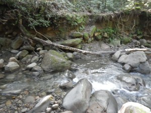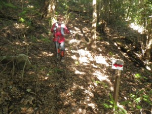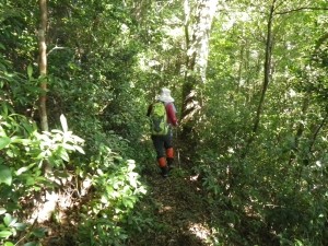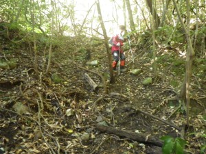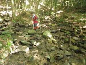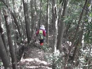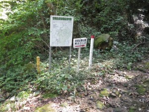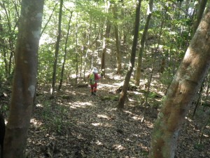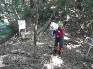 | 渡渉した場所にある道標 | 炭焼場の跡か? | 尾根に取り付く(12:20) |