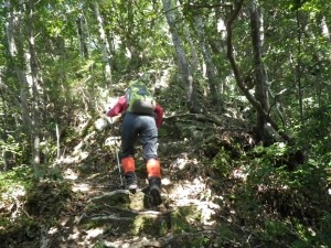 | 滝ルートとの合流地点(13:14) | 急登が続く | でかい木 |