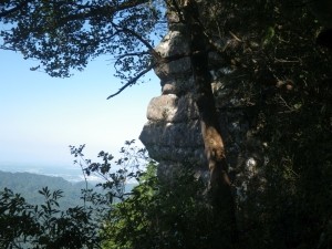 | 何段も積み重なって見える岩壁 | ダイモンジソウらしき花 | 展望所へ立ち寄る(13:40) |