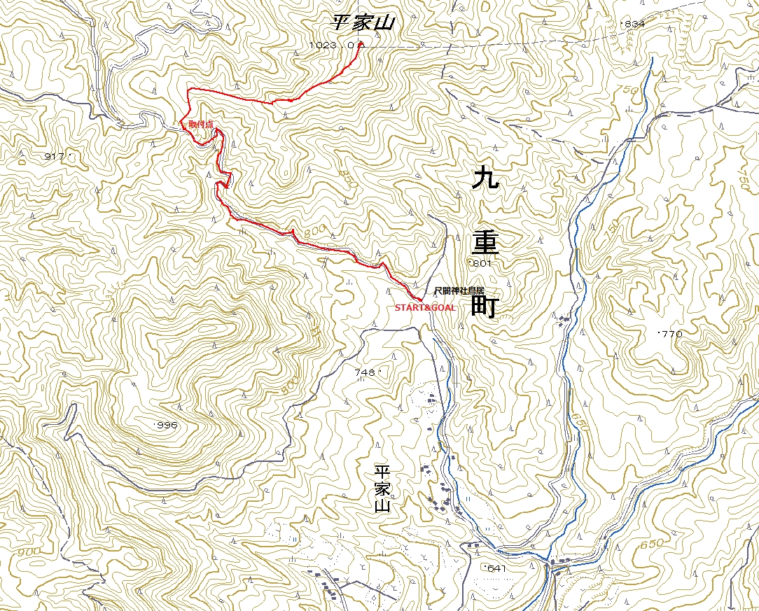 平家山登山コース(GPSによる歩行履歴)