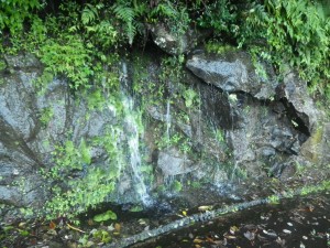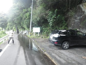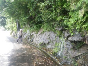 | 矢筈岳と比叡山 | 登山口手前の駐車スペース | 清水が滝のように流れ落ちている |