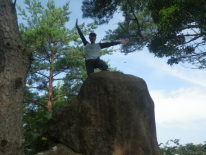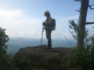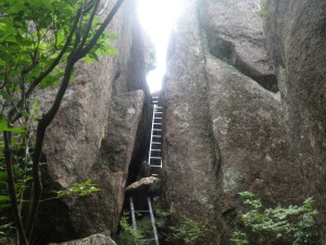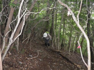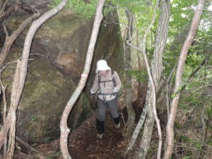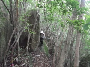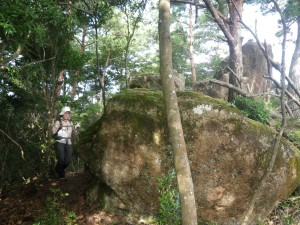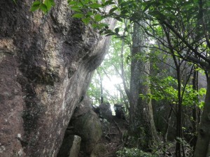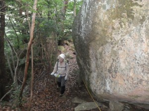 | 巨石の横を歩く | 苦しい登り | 慎重に |