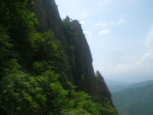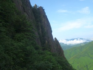| 確認中 | 青空が広がる | 岩壁の脇を進む |
