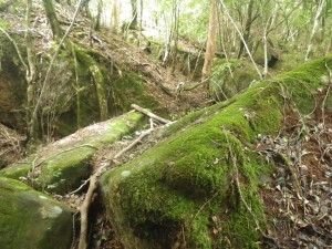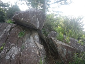 | 稗ノ山頂上にて | 展望はこんな感じ | 苔むした巨石が横たわる(下山中) |
