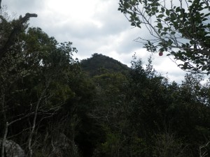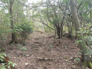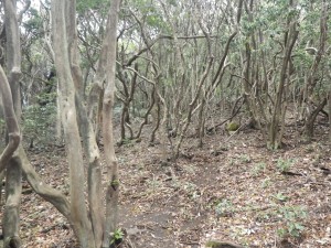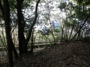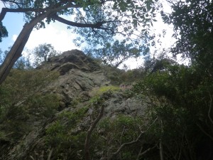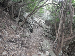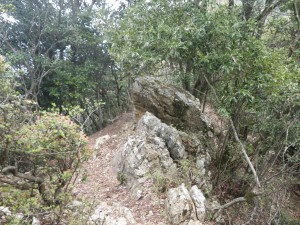 | 石壁の横を通過 | 見上げると | 同じ低木が続く |