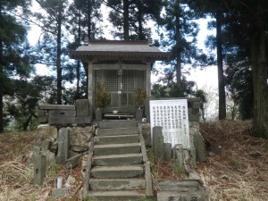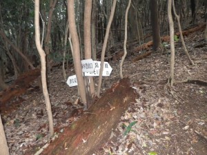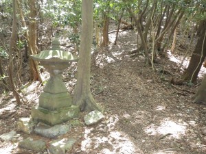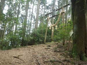 | 彦岳の標識 | 尾根道は植林帯 | 灯篭あり |