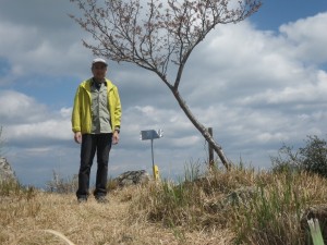 前ページ(元越山)からの続き 元越山の中野河内登山口より、朝来た道を戻り、佐伯I.Cの入口を通り過ぎ、そのまま県道36号線を北に向かう。11時15分、彦岳トンネルを抜けると右手に広場があってその奥の砂利が敷かれた駐車場に着く。奥に鳥居が見えるが、ここが彦岳への登山口のようだ。既に車は3台あってちょうど男性一人の登山者が準備していた。軽く会釈して私の方が先に出発する。 鳥居の先に道はないが、良く見ると左に踏み跡があって登山道とわかる。樹林帯を左に見下ろすと愛車クロが見える。山腹を北に登ると10分程度で舗装された林道に飛び出る。左に標識があってここから南へ延びる尾根に取り付く。先ほど歩いた元越山とやはりなんとなく雰囲気が同じで足元にはシダが茂っていたりする。植林から雑木林になり石灯篭を見ると分岐地点となる。道は東方向となり樹林帯が続く。少しピッチが速かったこともあり、急にきつさを感じる。もちろん歳のせいかもしれない。ピッチを落として尾根を登ると左に開けた場所が見えた。 と思ったらやはりちゃんと座れるように平らにした木が置いてある。眺めも良いのでここで小休憩をとることにした。 しばらくぼんやりと遠くを眺めていると駐車場でお会いした人が追いついて来て「久しぶりなのできつい」とのこと。しかし、鶴見岳一気登山に参加するとのことでそれなりにしっかりした足取りで先に行かれた。 呼吸も落ち着いたので私も遅れて出発。ここからの登山道は露岩があったり、展望が開けたりとなかなか私好みの景観である。ツバキの花びらが絨毯のように落ちていると何だか贅沢な思いになる。鳥居が目に入ると山頂は近い。 12時38分、山頂には、彦岳権現社があって人の手がずいぶんと加えられている。もちろん見晴らしも最高である。残念ながら期待していたオキナグサにはお会いできなかった。ちゃんと保護のためロープで囲っているようだが、1輪も見当たらない。土の下に未だ隠れていないか良く見たが見つからない。どうしたんだろうと想像する。もし、盗掘なら許せない。重罪にすべきである。 山頂では、山ガール三人組が、展望を楽しんでいた。ちょうどお弁当が終わったのか下山準備を始めた。先ほど追い越して行った方は、既にランチ中、私も草の上に座り、コンビニで買ったおにぎりとカップ味噌汁をいただく。 空はずいぶんと雲が出てきているが、風はずいぶんとおさまったようである。 このまま昼寝でもしたい気分だが、帰路の運転も長いことだし、眺めやツツジの花を写真に納め、下山を開始する。下山は往路を戻る。往路で追い越された人にまたもや帰路でも追い越されるが、山ガール三人組を私が追い越す。 13時50分、無事登山口に着く。 ここから津久見I.C目指し、後は高速道を経て家路に着く。道路の混雑もなく意外に早く自宅に戻ることができた。 今日も自然に山にそして地元の人達、お会いした方々に感謝。 山のガイドブックには 別名「飛孤峰(ひこみね)」とある。山頂の彦岳権現社には、彦火火出見尊(ひこほほでみのみこと)と言う火の神が祭られているとのこと。 <コースタイム> 登山口-(10分)-林道-(25分)-分岐-(35分)-山頂-(50分)-登山口 ※休憩時間含まず。全行程で2時間20分でした。 |
