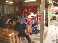 | 左手行者堂 | 上宮(中岳)にて | 山小屋は多くの人で賑わう |