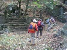 | 高住神社 | 望雲台へ鎖場を行くHさん | 望雲台の絶壁 |