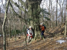| 観察路を横断する | 平らな場所で小休憩 | こんな巨木も |