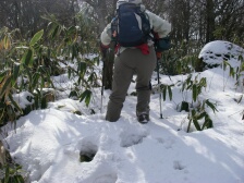 | 笹を掻き分ける | 一番の難所 | 雪は深くなる |
