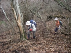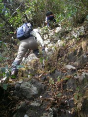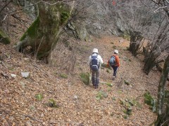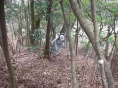 | 一旦下り回り込む | 痩せた支尾根を急登する | こんなに急斜面 |
