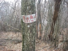 | 登山道とは言えない | 笹こぎ中 | 何の印? |