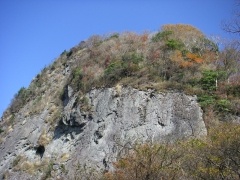 | 滑るので注意 | 溶岩の岩壁 | 石碑 |