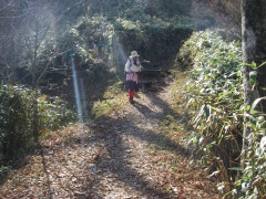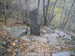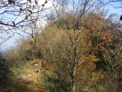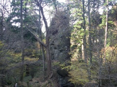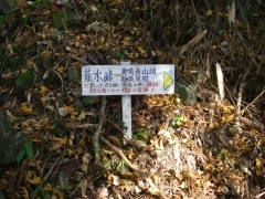 | 籠水峠から岩壁を見る | 籠水峠の標識 | 谷間を降る |