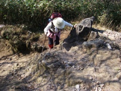 | 足元に注意 | 上宮が見えた | 南岳からの登山道との出合い |