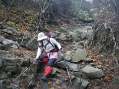| 急登をあえぐ | 鎖場 | 西側の尾根を見る |