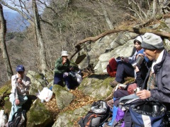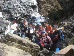 | 滝を見上げるメンバー | 全員で | 下山開始 |