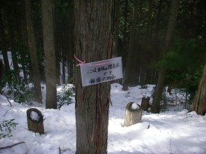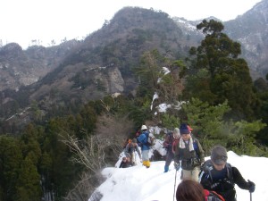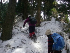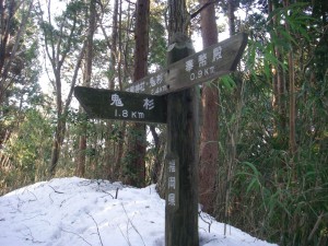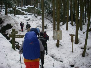 | 鬼杉と玉屋神社の分岐 鬼杉へと向かう | 雪は深い | 衣ガ池で一息 |