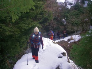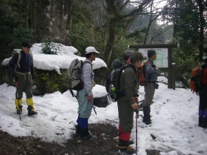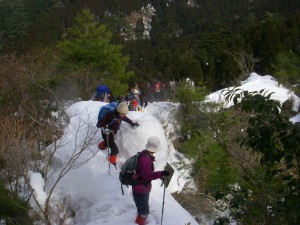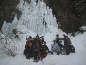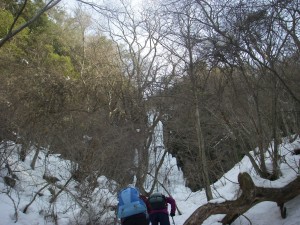 | 滝の上部から溶け始めている | 全員で | 再び登山道に戻り、今度は別のルートへ |