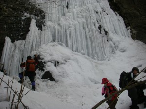 | ▲見事に氷結した幻の滝 | ||