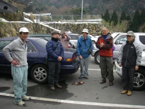 2011年2月6日 天気 晴れ 遊山歩2月例会は、英彦山の幻の滝。昨年、同じ時期に訪れたのだが今年は異常に寒く、また積雪も半端じゃない。滝までラッセルを覚悟してスタートした。メンバーはオーペン参加ということで遊山歩のメンバー以外にも集まり、総勢16名という団体になった。「幻の滝」と言うことでやはり謎めいているのか、人気が高い。 JR英彦山駅に午前8時に集合、そのままスロープカーの駐車場まで移動するが、道路の一部が凍結していて少々緊張した。駐車場で自己紹介と注意事項等の説明があっていよいよ出発である。午前8時25分駐車場を出発し、奉幣殿を目指す。階段には雪があるが、滑らない。奉幣殿でトイレを済ませ、お参りを済ませ玉屋神社方面へと進む。ここからはほぼ平らな道が続く。大雪のせいで杉が倒れていて無残な姿に。登山道も塞がれていて回り道となっているところもある。玉屋神社と鬼杉との分岐は鬼杉方面へと進む。しばらく歩くと衣ガ池に着く。ここで一服していよいよ登山道をはずれ谷間を歩く。ところがトレースはしっかりしていて道ははっきりしている。かなりの人が歩いた跡のようだ。メンバー以外の登山が一人先を行く。勾配は徐々にきつくなり、それに伴って雪も深くなる。つぼ足で進めばラッセルしなくて済む。急斜面の谷を詰めると滝が現れた。とんでもなく凍っている。見事である。昨年とはまるで違う滝のようである。撮影会も終わり、下山開始であるが、途中で別のピッケル軍団とすれ違う。この滝は知れ渡ってしまい、「幻」の名を変えるときが来るのか、いやひとまず「幻だった滝」としておこう。登山道に戻った我々はリーダのMORIさんからこれからスペシャルコースを行こうと提案がある。スペシャルコース?と言っても私も知らない。ついて行くだけだ。登山道をしばらく戻り途中から左に入り込む。倒木でまともに歩けない。結局私がラッセルすることに。岩のヤセ尾根に出るとMORIさん奥さんが再び先頭に。鹿の踏み跡をたどり歩く。ところが一段上がった岩の上には鹿の踏み跡がない。高すぎて諦めたようだ。よっしゃーと言うことでカラスの出番ある。よじ登ってとトレースを造る。再び鹿の足跡が現れなぜかほっとする。森の中に入り登りつめると「811mの標高点」と札がある。ここで昼食をとることに。下山はこの先を道なき道を下る。下りきると玉屋神社からの登山道に合流した。しばらく歩くと今朝歩いてきた分岐に出て後は往路を戻る。無事駐車場に着いたのは13時40分であった。 今日も楽しく怪我も無く、無事帰れました。本当に感謝の1日でした。 |